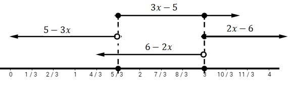 5-3x \ \ \ \ {\rm si~} 5-3x< 0⟺x< 5/3\end{array}\right.$$
