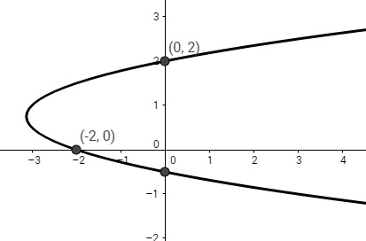 Determinar la ecuación de una parábola cuya directriz es vertical y pasa por los puntos \(\left(0,\ 2\right),(-2,0)\) y \(\left(0,\ 1/2\right)\).