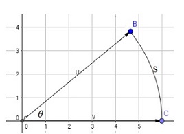 En la figura de la izquierda se presenta un ángulo en posición normal (vértice en el punto \((0,0)\) y sentido de giro positivo), formado por las semirectas \({\rm u}\) y \({\rm v} \) el cual posee una longitud de arco \(s\).