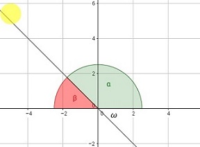 Por ejemplo, suponiendo un ángulo \(\alpha=135°\) que se ubica como en la figura de arriba. El ángulo de referencia \(\beta=45°\) por ser \(\alpha\) y \(\beta\) dos angulos complemetarios, de donde las funciones trigonométricas del ángulo \(\alpha\) son como sigue.