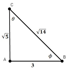 Dada la figura de la izquierda determinar las funciones de los ángulos agudos phi \(\phi\) y theta \(\theta\).